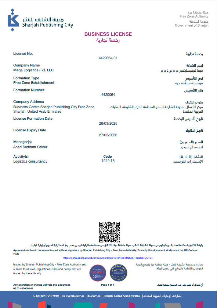 - storage@megalogisticsfze.com, shipping@megalogisticsfze.com